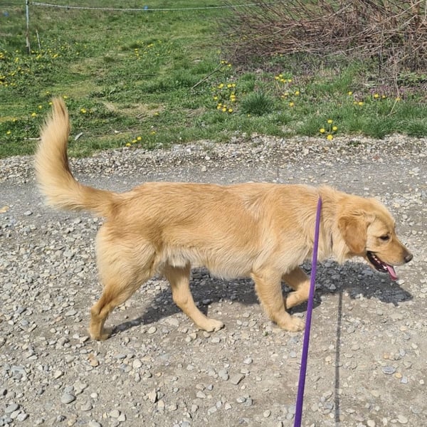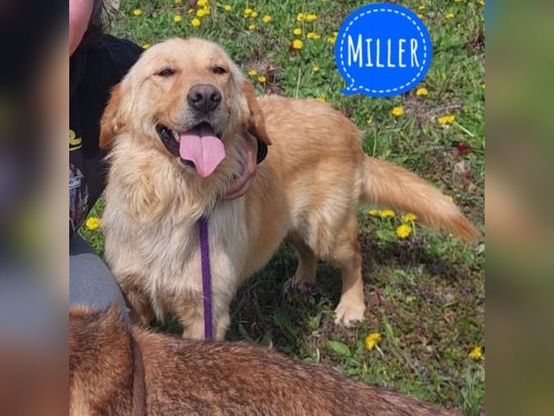 Miller ist ein Rüde, laut Tierarztschätzung ca. 3 Jahre alt (geb. 01.07.2022), wiegt 28 kg und ist 60 cm groß. Er ist ein Golden Retriever.