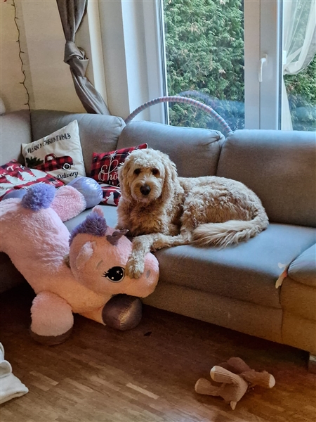 Wir bieten unseren wundervollen fünfjährigen Goldendoodle F1 Rüden, Barney, zum decken an. Barney steht gesunden Hündinnen ( Goldendoodle Labradoodle und Pudel) zur Verfügung.