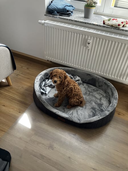 Unser Rüde Carlo (geb. 25.04.2024) steht ab sofort zur Verpaarung zur Verfügung. Er stammt aus einer liebevollen Hobbyzucht. Mutter ist ein Goldendoodle, Vater ein apricotfarbener Zwergpudel. Carlo ist also ein F1b Gooldendoodle