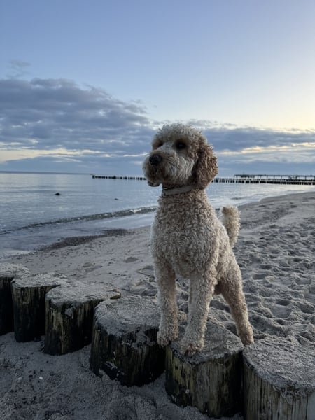 Hallo! Mein Name ist Theo und ich bin ein F3 Multi-Gen Goldendoodle. Mein Inserat bietet „nur“ die Leistungen eines Deckrüden. Ich habe ein liebevolles Zuhause ♡ und stehe demnach NICHT zum Verkauf! Mein Charakter zeichnet sich durch besondere Freundlichkeit, Lebensfreude und Zuneigung aus. Ich bin derzeit 1,5 Jahre alt und meine Gesundheit ist tadellos. Man könnte also sagen ich fühle mich „pudelwohl“. Meine Fellfarbe ist Apricot und meine Fellstruktur ist außergewöhnlich lockig, sehr kräftig und dennoch seidenweich. Ein besonderer Vorteil besteht darin, dass ich dieses traumhafte Fell nicht verliere, weshalb ich mich besonders gut für Allergiker eigne. Short Facts: * Hunderasse: F3 Multi-Gen Goldendoodle * Eltern: F1b & F1b Goldendoodle * Alter: 1,5 Jahre * Augenfarbe: Braun * Fellfarbe: Apricot * Schulterhöhe: 57cm * Gewicht: 24kg * Fellverlust: nein * Gesundheit: topfit und vollständig geimpft * Charakter: familienbewusst, herzlich, liebevoll, loyal, treu