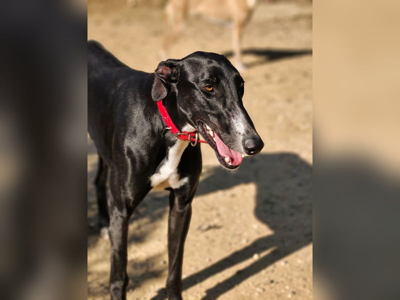 Es ist selten, dass wir Greyhounds in der Vermittlung haben. In Spanien sehen wir viel öfter die allgegenwärtigen Galgos. Vielleicht stellen Sie sich jetzt die Frage: Was ist der Unterschied zwischen einem Greyhound und einem Galgo (zumal der Galgo auch als „Spanish Greyhound“ bekannt ist? Nun, beide sehen aus, als hätten sie in den Beinen ein Plus an Wachstumshormonen und rennen, als gäbe es kein Morgen. Aber der Greyhound ist der britische Gentleman der Windhunde – ein elegantes Muskelpaket, ursprünglich für die Jagd gezüchtet, lange Zeit dem Adel vorbehalten und heute fast nur noch als Hund für die Rennbahn eingesetzt. Der Galgo Español stammt aus Spanien, ist etwas zierlicher, hat verschiedene Fellformen und gilt als der Denker unter den Windhunden. Während Greyhounds das Tempo lieben, sind Galgos die Marathonläufer mit Ausdauer und Köpfchen. Ricky bringt das Beste aus beiden Welten mit: Den Charme eines Briten und die Lebensfreude eines Spaniers.
