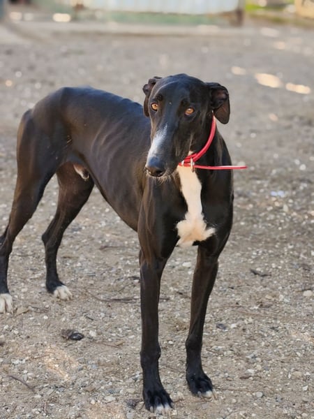 Dürfen wir vorstellen: Ricky, ein einjähriger (Stand 02/26) Greyhound aus Spanien – und schon jetzt ein echter Charakterkopf. Wer glaubt, Windhunde seien nur Rennmaschinen auf vier Beinen, hat Ricky noch nicht kennengelernt. Seine Geschichte beginnt im sonnigen Andalusien, wo er, wie viele Windhunde, zuerst in die Hände eines sogenannten Galguero geriet. Doch anstatt den Hasen aufzuspüren, zeigte Ricky der Hetzjagd die kalte Schnauze – und landete kurzerhand im Refugio Kimba. Man könnte sagen, Ricky ist der Pazifist unter den Greyhounds: Jagd? Macht er lieber nur auf Kekse und Bälle.