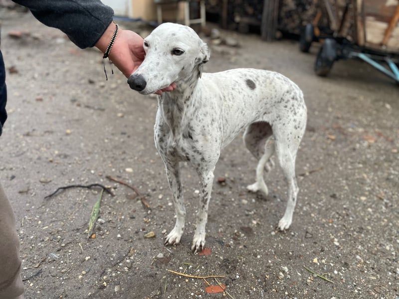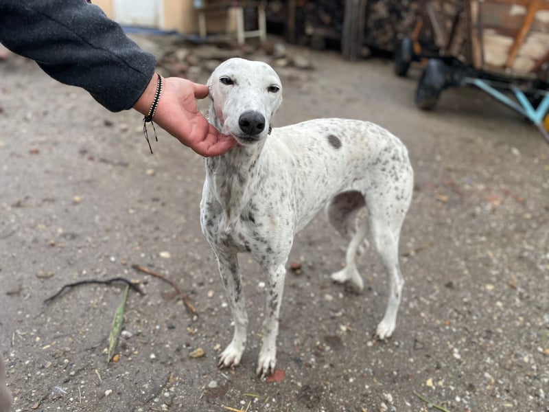 Solita ist, wie alle Windhunde, ein ganz besonderes Wesen. Doch sie ist zudem optisch wirklich wunderschön und speziell. Sie ist besonders zart und verhält sich fast schon unscheinbar. Sie hält sich im Hintergrund, freut sich aber sehr über Aufmerksamkeit und Streicheleinheiten. Solita versteht sich gut mit Artgenossen und hat auch mit Katzen und Hühnern kein Problem.