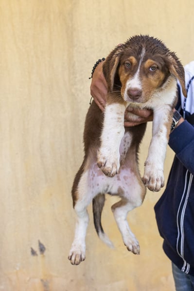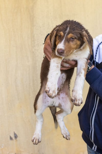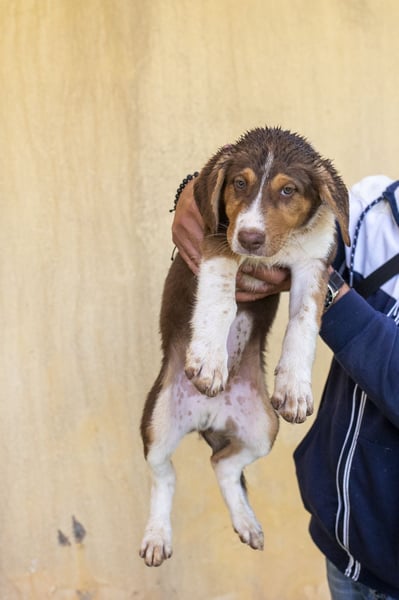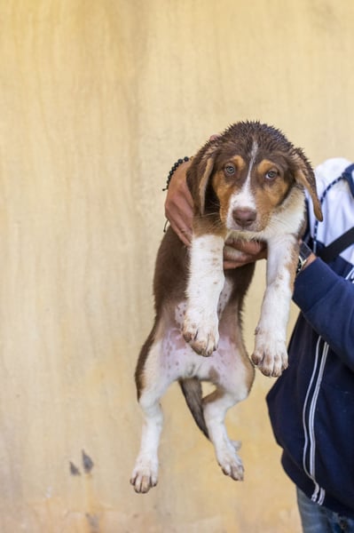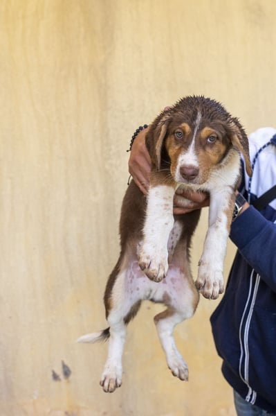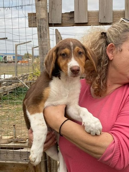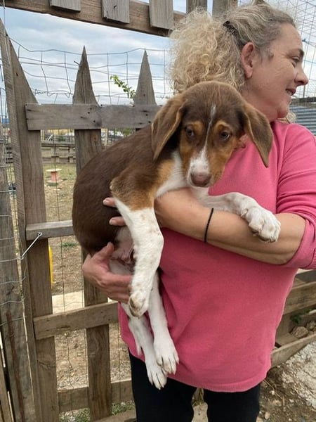 Wir wurden um Hilfe gebeten, drei kleine Welpen aufzunehmen, die im Krankenhaus von Alexandroupolis geboren wurden. Ihre Mama – eine dort lebende Straßenhündin – brachte sie in Sicherheit zur Welt, und das Krankenhauspersonal kümmerte sich liebevoll um die kleine Familie. Doch die Umgebung wurde zunehmend gefährlich: Die neugierigen Welpen wollten immer wieder auf die Straße laufen, und auch Jäger wurden auf die vermutlich Jagdhund-Mischlinge (mit Brackenanteil) aufmerksam.