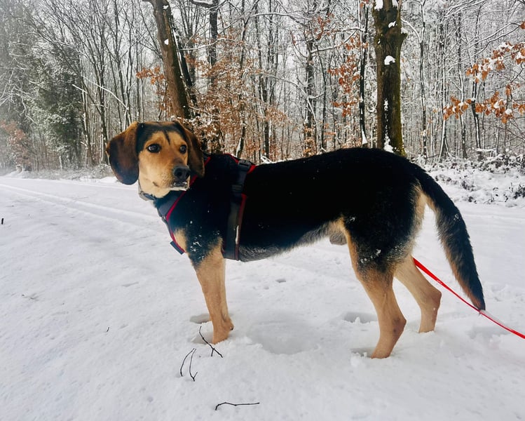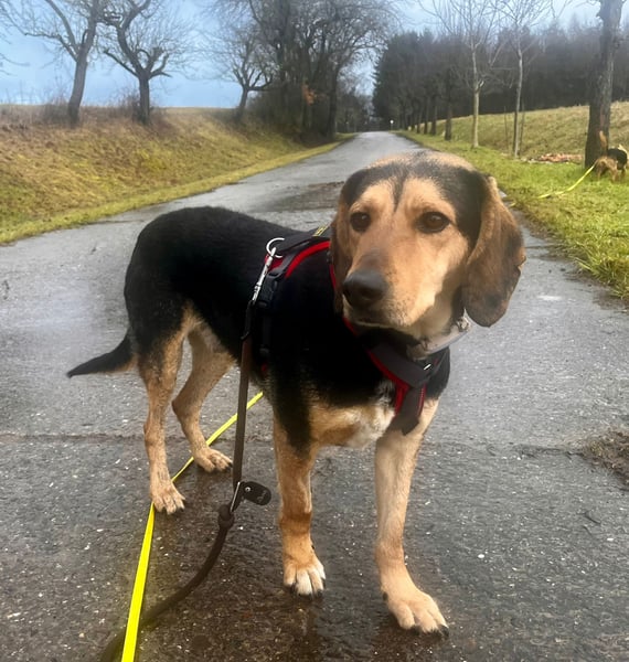 Gassigehen ist mit ihm entspannt: Er zieht nicht an der Leine, bleibt in der Nähe und ist aufmerksam. Bei Hundebegegnungen entscheidet die Sympathie, dabei ist er wachsam, aber nicht überdreht. Im Garten meldet er Besucher, ist aber kein Dauerkläffer.