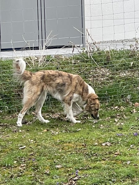 Ihre Baustellen sind andere Hunde und ihr Jagdtrieb. Mali nimmt auch ihre Aufgaben als Herdenschutzhund Mix sehr ernst. Sie bewacht ihre Menschen und ihr Grundstück.