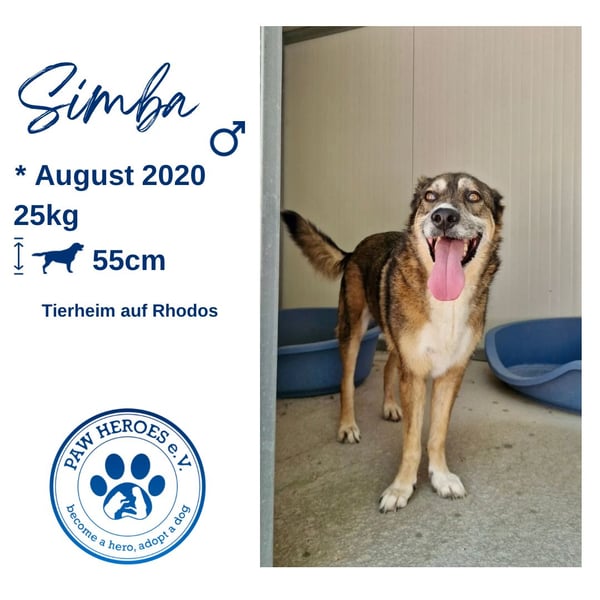 Simba ist ca. 5 Jahre alt, ca. 55 cm groß und kastriert. Er ist sehr verschmust, liebt ausgedehnte Spaziergänge und ist eher ruhig und ausbalanciert. Er läuft bereits sehr gut an der Leine.