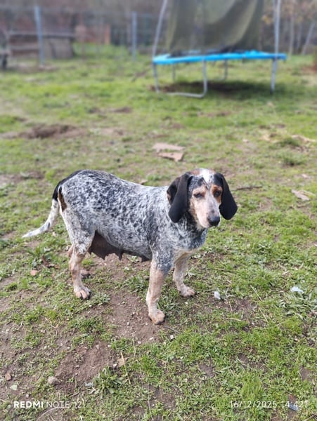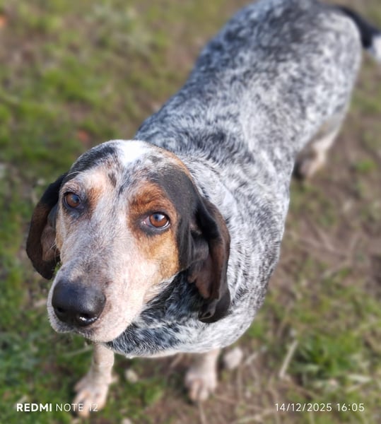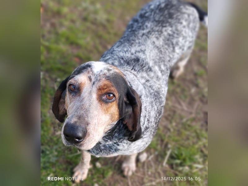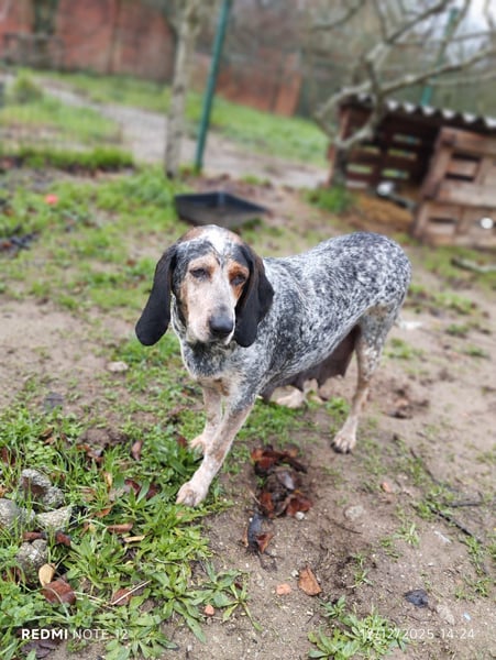 Hier seht ihr die Griffon bleu de Gascogne-Hündin Bala, die Sonia und Carmen aus schlimmer Haltung im Zwinger bei einem Jäger retten konnten (siehe Video).