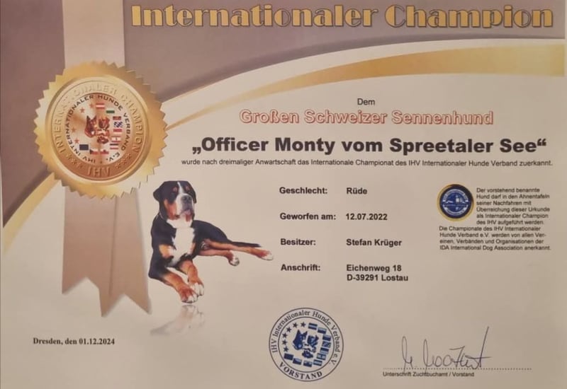 und ist im IHV e.V. offiziell als Deckrüde gelistet.