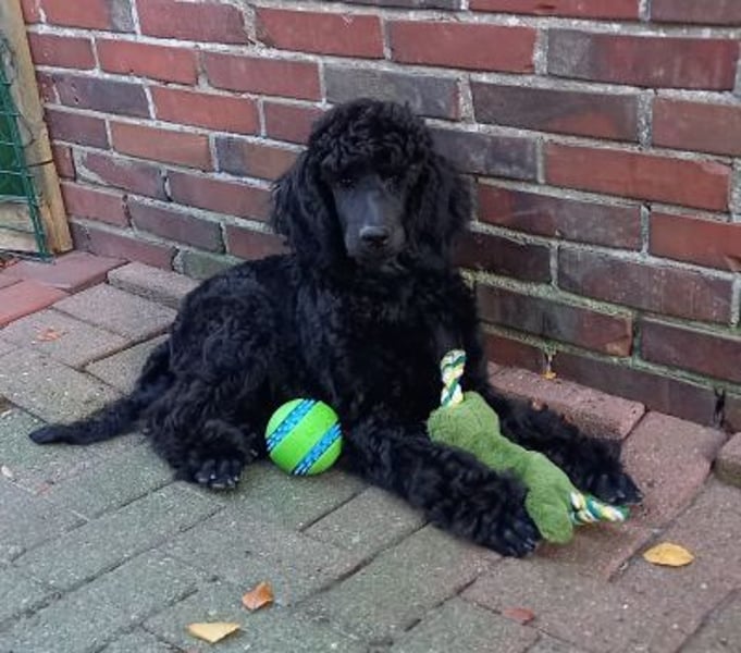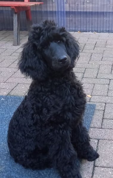 Sweet Royal Mauro , Nr. 5 blaues Halsband, schwarzer Rüde. Aus sehr Menschen bezogener lieber Rüde, aber er weis ganz genau was er will und nicht will, vor nichts Angst, schon jetzt sehr selbstbewusst.
