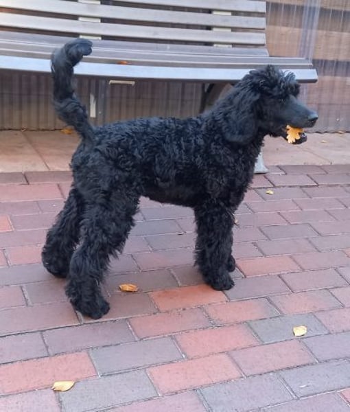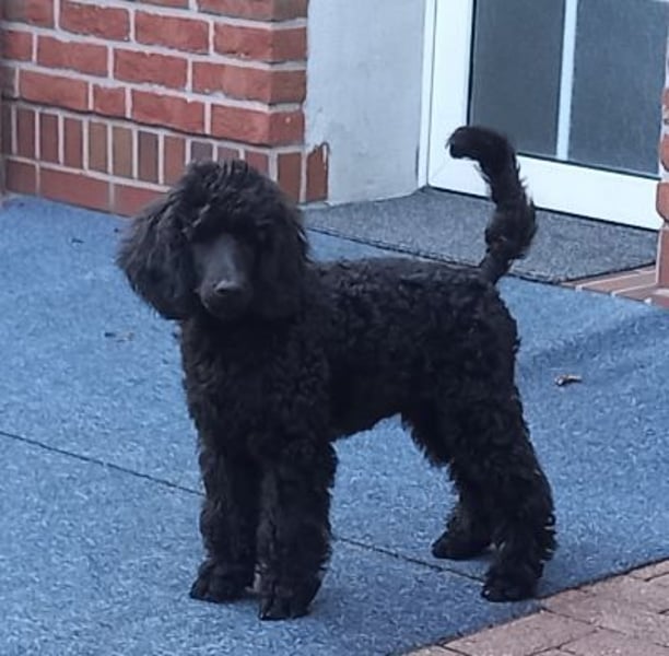 Ein wunderschöner dunkelbrauner Rüde, wenn er sich weiterhin so gut entwickelt, wäre er auch für Show und Zucht geeignet. Er ist farbgen getestet auf den S-Lokus und trägt Scheckung.