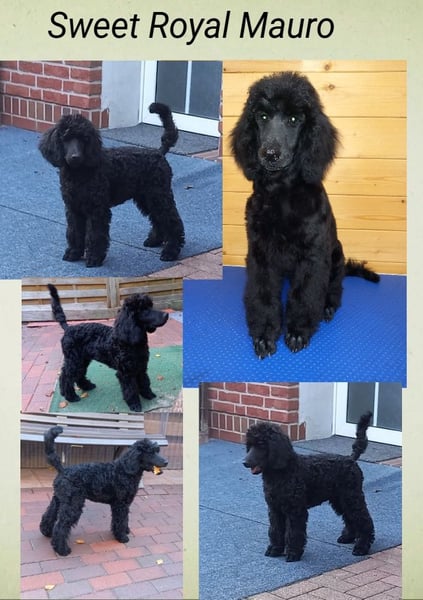 Sweet Royal Mauro , Nr. 5 blaues Halsband, schwarzer Rüde. Aus sehr Menschen bezogener lieber Rüde, aber er weis ganz genau was er will und nicht will, vor nichts Angst, schon jetzt sehr selbstbewusst. Wäre was für Show und Zucht.