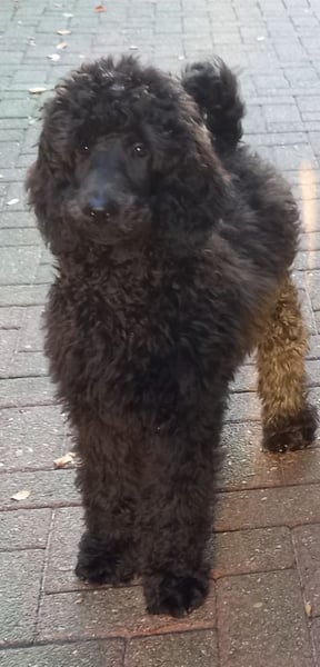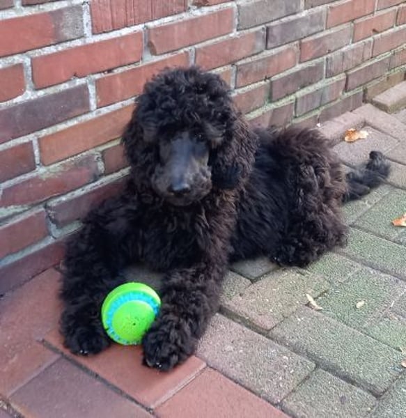 Ein wunderschöner dunkelbrauner Rüde, wenn er sich weiterhin so gut entwickelt, wäre er auch für Show und Zucht geeignet. Er ist farbgen getestet auf den S-Lokus und trägt Scheckung.