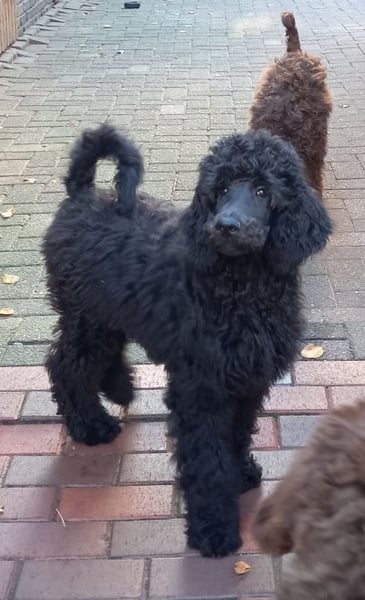 Sweet Royal Mauro , Nr. 5 blaues Halsband, schwarzer Rüde. Aus sehr Menschen bezogener lieber Rüde, aber er weis ganz genau was er will und nicht will, vor nichts Angst, schon jetzt sehr selbstbewusst.