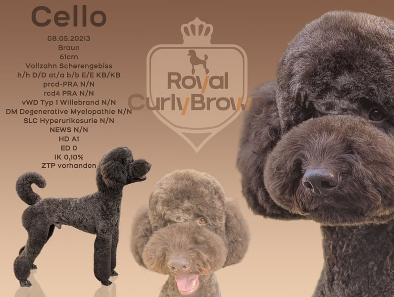 das ist unser König Cello, ein brauner Königspudel (Großpudel) aus VDH-Zucht mit Papieren und bestandener Zuchttauglichkeitsprüfung (ZTP) vom URCI e.V..