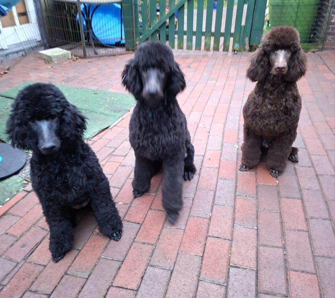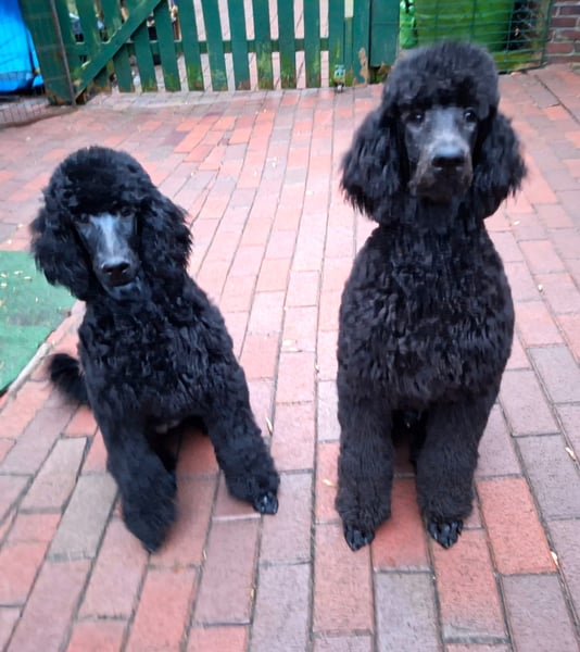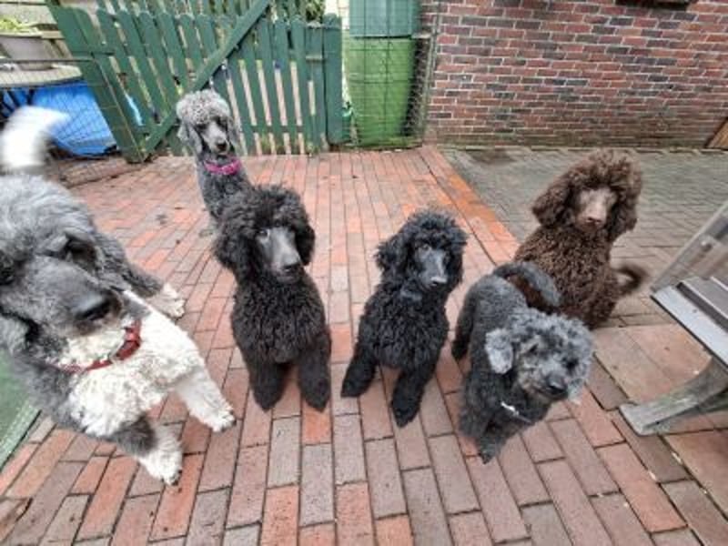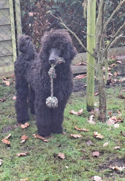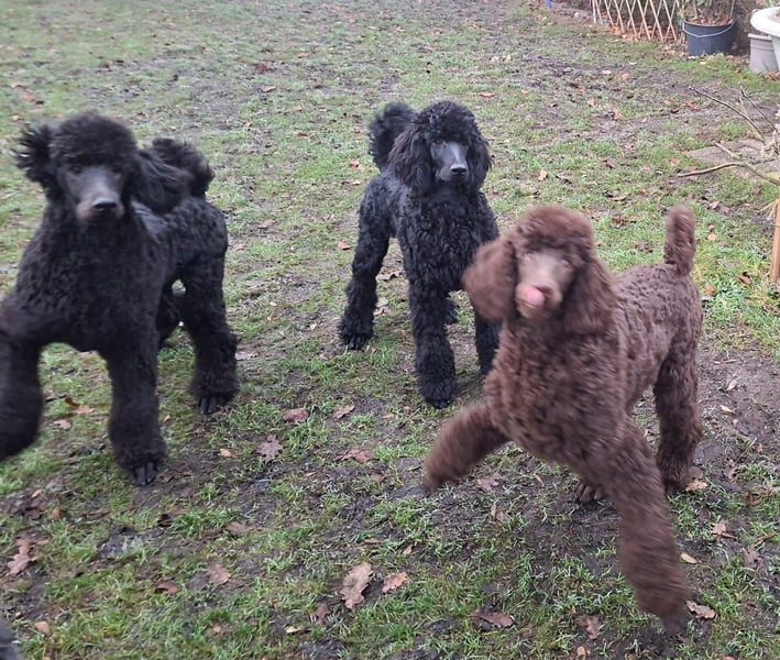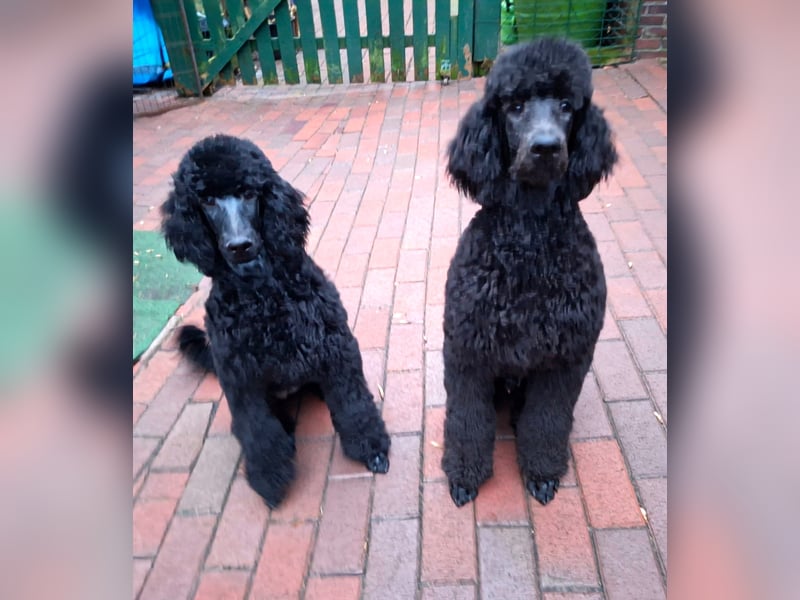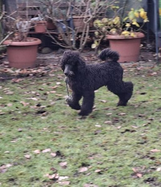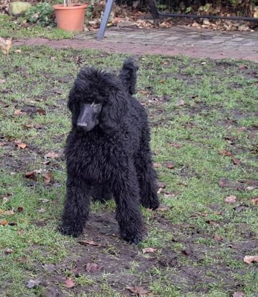 Er ist ein wunderschöner schwarzer Großpudel Rüde, mit einem liebevollen Charakter, ein großer Schmuser. Er war schon mit in der Welpenschule.