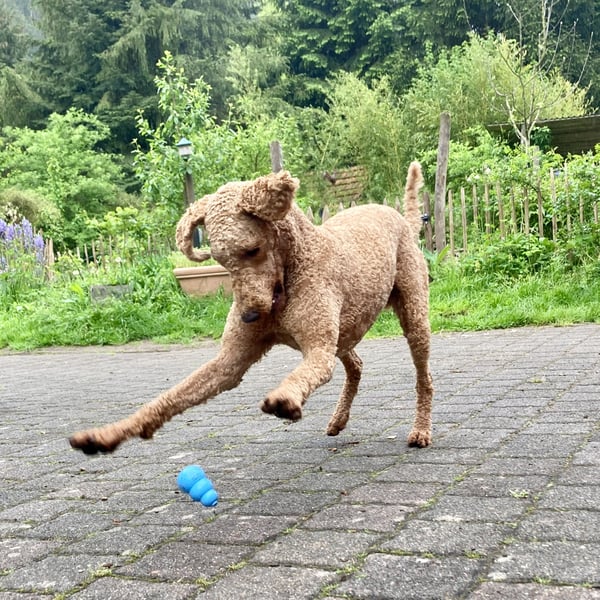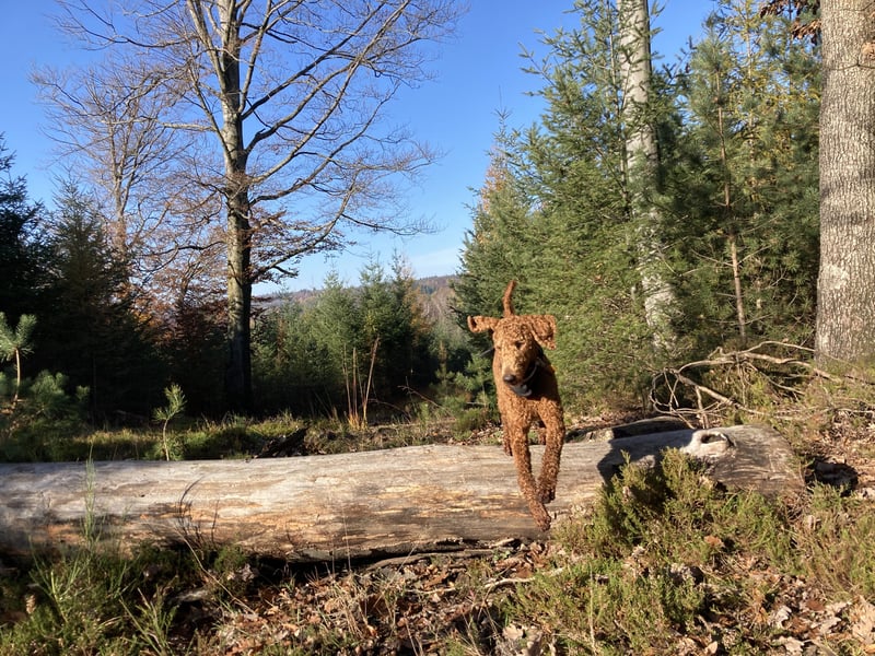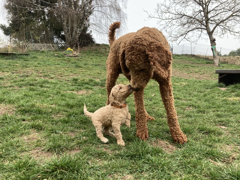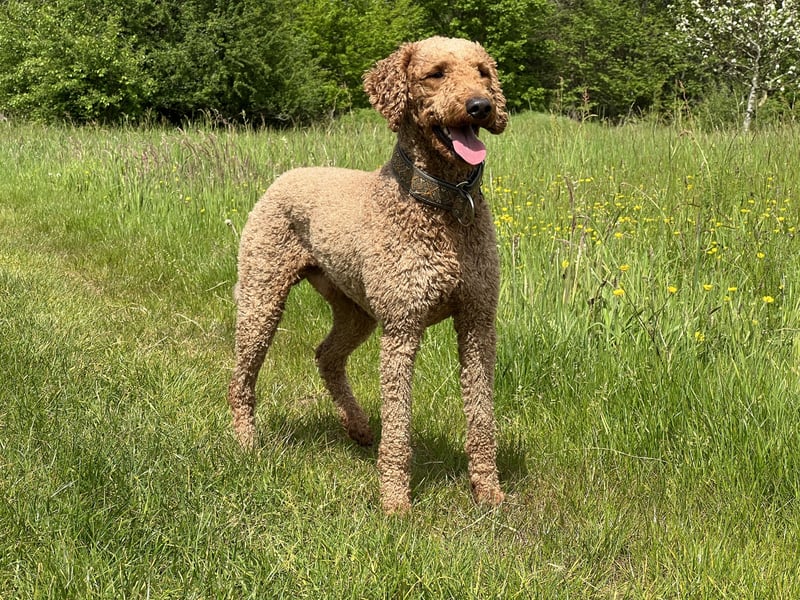 Frodo ist ein pudeltypisch entspannt kontaktfreudiger Begleiter.