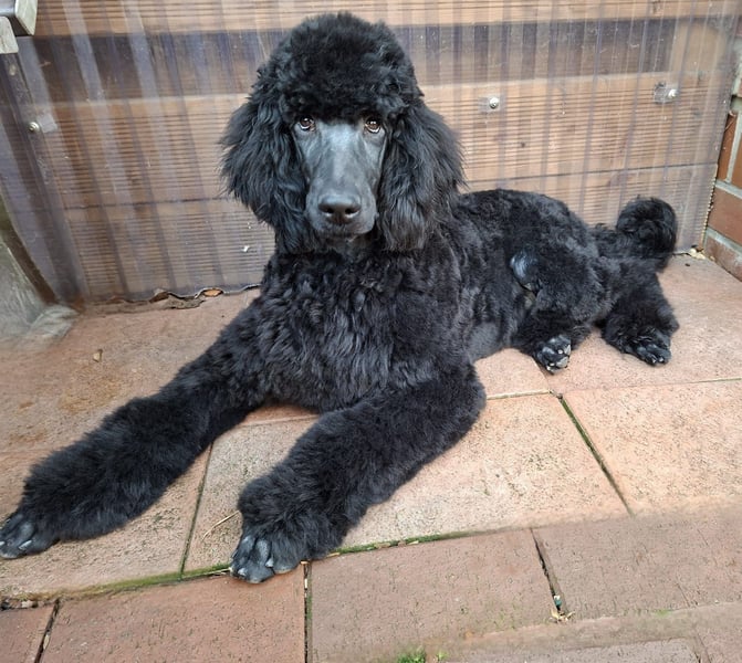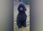 Er ist ein wunderschöner schwarzer ( er könnte aufhellen wie seine Mutter Velvet) Großpudel Rüde, mit einem liebevollen Charakter, ein großer Schmuser. Er war schon mit in der Welpenschule. Läuft super an der Leine.
