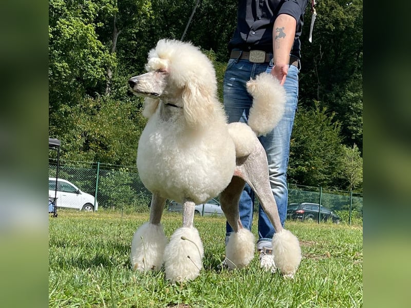 wir planen eine Verpaarung Großpudel im Sommer 2026 zum letzten Mal mit Int. Ch. " Fantastic Phantoms Limited Edition Elektra " und " ... " .