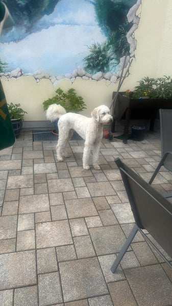 Emil ist ein Pudel mit 26 kg und einem Schulter Maß von 65 cm.