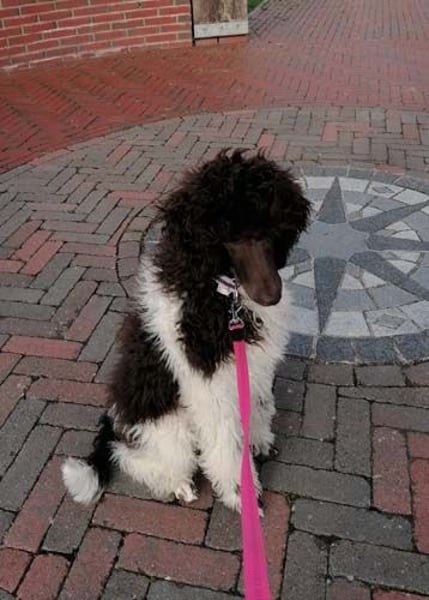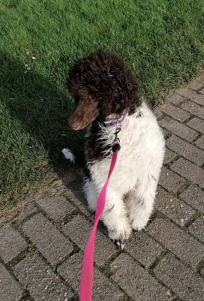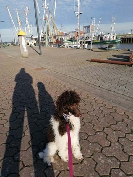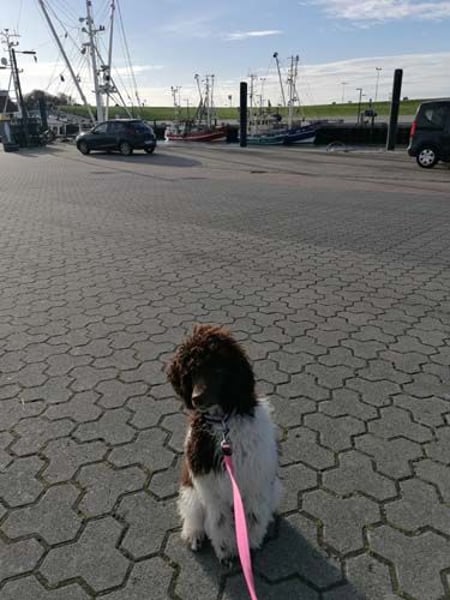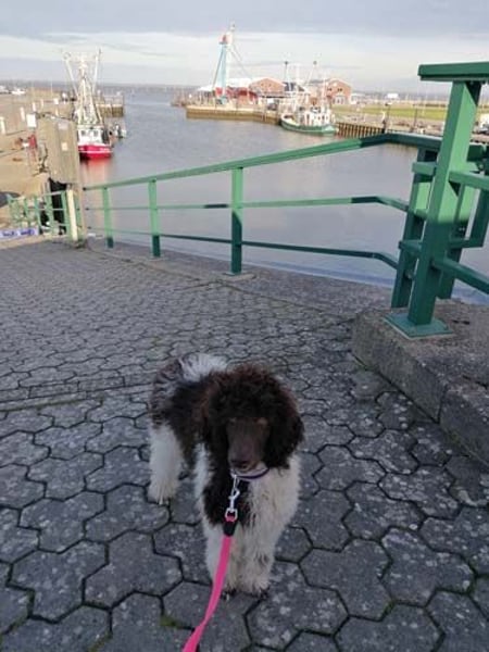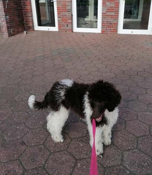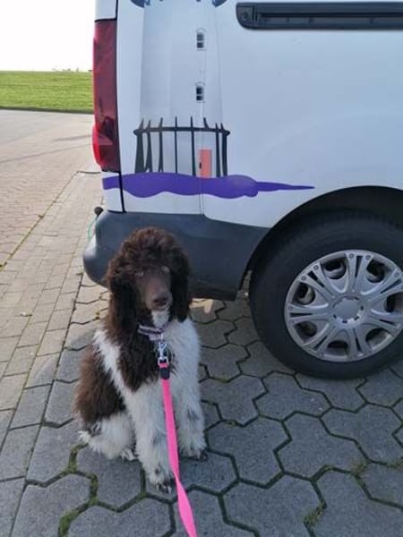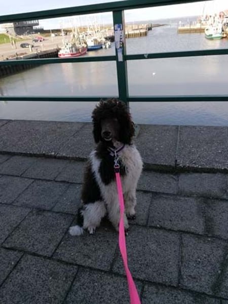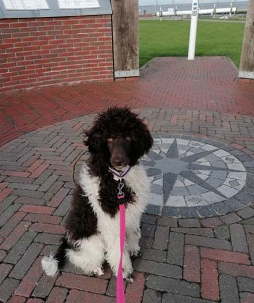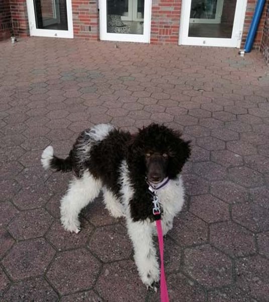 Im Auftrag und aus gesundheitlichen Gründen - sucht Lenja nach einem 4-ever-Home. Sie ist am 06.06.2025 geborten - trägt die wunderschöne Farbe dunkelbraun/weiß gescheckt. Sie ist ihres Alters gemäß aufgeweckt, zutraulich und offen für alles und jeden. Sehr gut sozialisiert. Super leinenführig ob in der Stadt, beim Sightseeing oder einfach in Feld und Flur. Mit dem Auto zu fahren, macht ihr überhaupt keine Probleme und sie springt freudig ins Auto rein. Sie ist ein sehr guter Fresser und wurde bisher gebarft. Wäre schön, wenn sie weiterhin gebarft werden würde. Alles rund um die Pflege eines Pudels hat sie auch schon kennen gelernt und macht auch dort keinerlei Probleme.