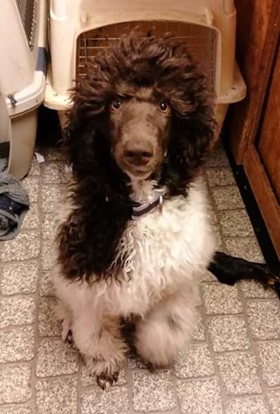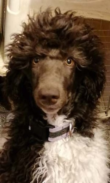 Großpudelhündin *06.06.2025 braun/weiß gescheckt