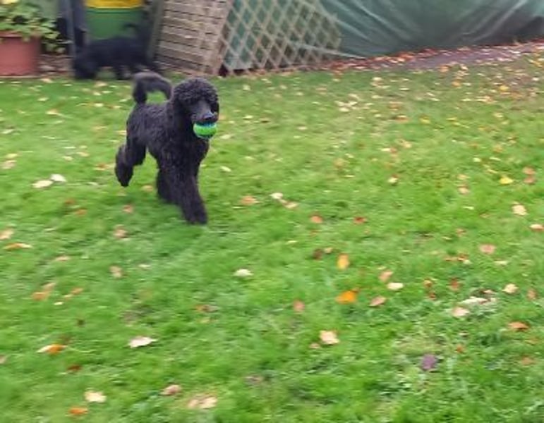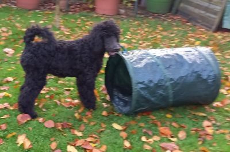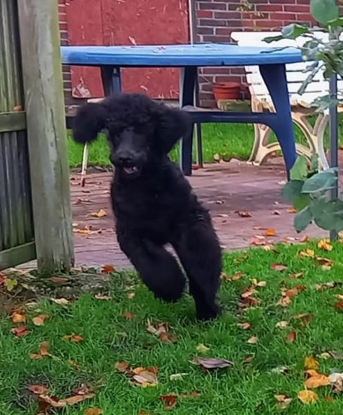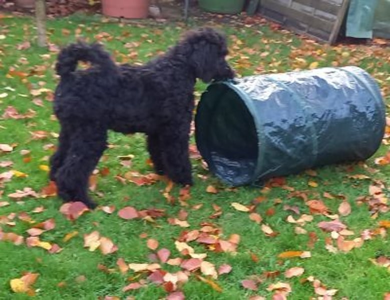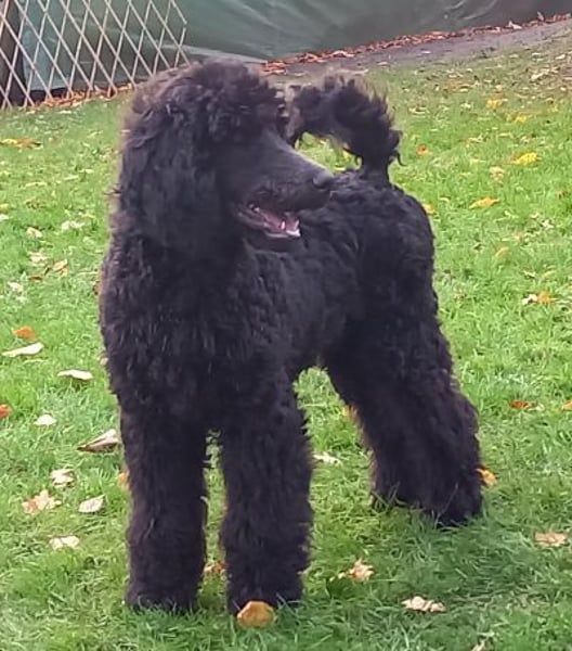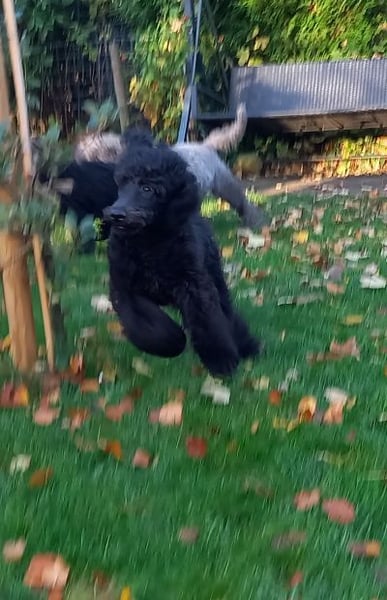 Ein wunderschöner dunkelbrauner Rüde, wenn er sich weiterhin so gut entwickelt, wäre er auch für Show und Zucht geeignet. Er ist farbgen getestet auf den S-Lokus und trägt Scheckung.