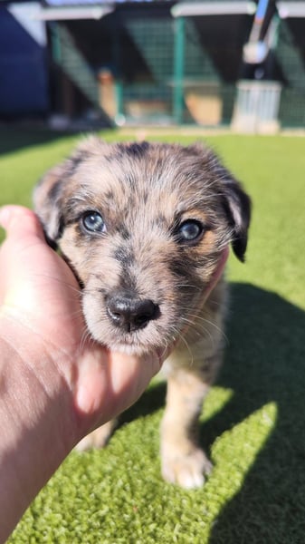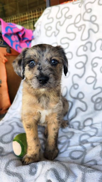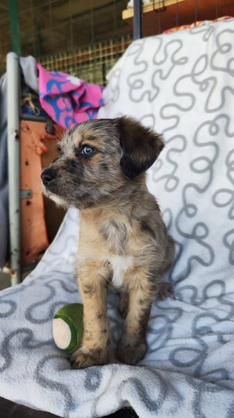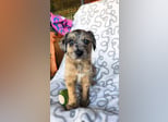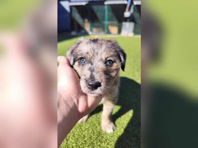 Tulpe ist ein liebes kleines Mischlingsmädchen, das vom Aussehen her mehr nach seiner Mutter kommt. Sie ist gut sozialisiert, welpentypisch verspielt und passt sicher auch gut in eine Familie mit Kindern. Tulpe muss natürlich noch viel lernen und der Besuch einer Welpenschule würde ihr dabei helfen.