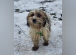 Der kleine Rüde hat einen großen Teil seines Lebens mit anderen Hunden auf einem verwahrlosten Grundstück verbracht.
