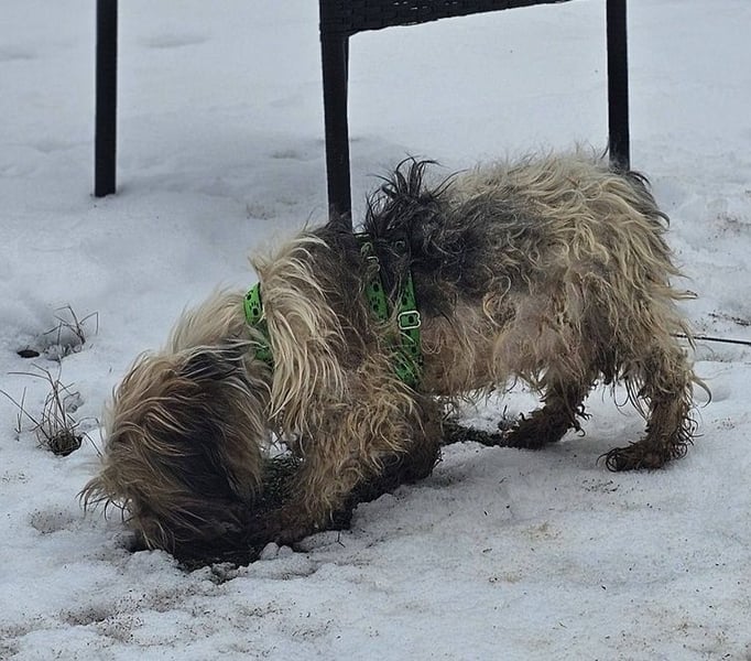 Kurzinfo: Das Fell ist total verfilzt und wird vor der Ausreise ganz abgeschoren werden müssen.