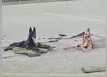 Er lässt sich sehr gut mit Leckerlies motivieren, lernt recht flott und kennt die Übungen aus der Unterordnung.