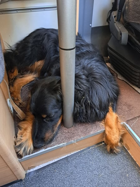 Leroy kann gut ein paar (bei uns mal 3-4Std.) alleine bleiben, liebt es mit uns im Wohnmobil unterwegs zu sein und bleibt auch dort gerne mal alleine. Er fährt auch im PKW mit. Allerdings kennt er dort keine langen Strecken, bleibt aber während des Trainings auch dort ganz ruhig alleine.