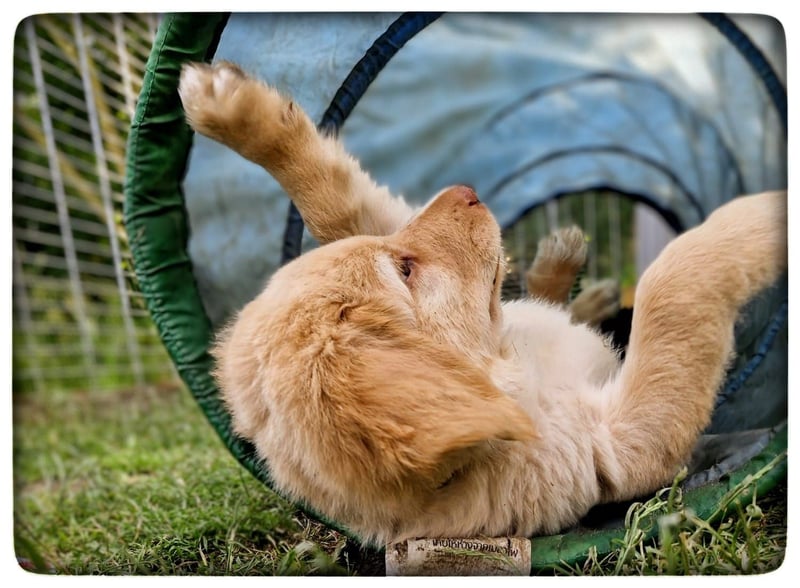 Mit etwa 3 bis 4 Wochen ziehen die Zwerge dann tagsüber in ihren geräumigen Welpenauslauf.