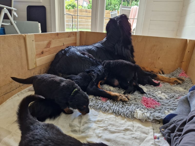 Der A-Wurf vom Evenkamp ist am 05.05.2025 gefallen. Aus der Verpaarung Tammy aus dem Emsland und Daimler von den Angelfranken suchen noch sieben wunderhübsche, quietschfidele, schwarzmarkene Rüden ihr zukünftiges Zuhause.
