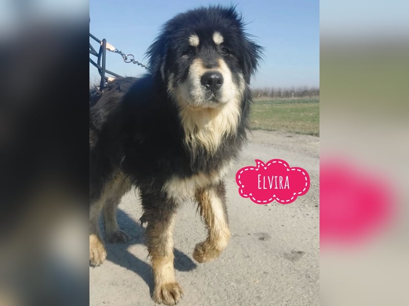 Elvira ist ein Mädchen, laut Tierarztschätzung ca. 2 Jahre alt (geb. 11.12.2023), wiegt 32kg und ist 67cm groß. Vermutet wird ein Hovawart–Tornjak Mischling.
