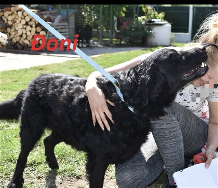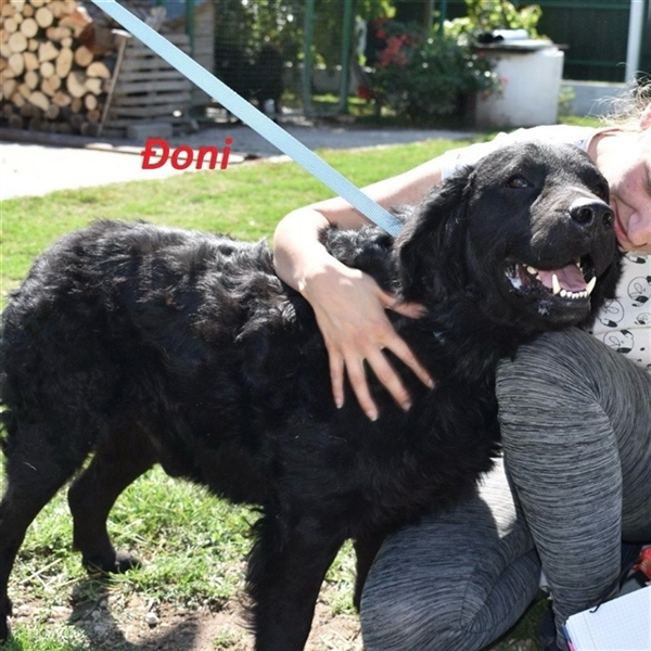 Johnny (kroatisch Đoni) ist ein Bub, er ist ca. 9 Jahre alt (14.10.2015), er ist 52cm groß und wiegt 40-45kg (pummelig). Vermutet wird ein Retriever/Schearzer Hovarwat Mischling.