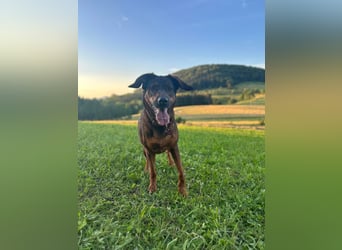 Luna Leider sucht diese außergewöhnlich tolle Schäferhund-Mix Hündin (Vermutung liegt bei Schäferhund x Dobermann) ein neues Zuhause . Der Abgabe Grund liegt nicht beim Hund und kann gerne persönlich besprochen werden. Die Süße Maus liebt es zu kuscheln und die Aufmerksamkeit bei sich zu haben .Sie durfte die Grundgehorsamkeit wie Sitz, Platz, Fuß und leinenführigkeit lernen. Sie ist eine aufgeweckte und treue Seele die den perfekten Ausgleich zwischen Action und Ruhe braucht . Mit ihren 9 Jahren ist sie immer noch top fit und für jedes Abenteuer zu haben . Zudem kennt sie den stallalltag mit Pferden und läuft auch brav mit ihnen mit . Da sie von Kleinkinder leider schnell gestresst ist wäre es uns recht wenn im neuen haushalt keine kleine Kinder wären . Außerhalb der 4 Wände hat sie keine Probleme mit babys oder Kinder . Sie ist verträglich mit anderen Hunden und spielt gerne mit ihnen . Aufgrund des Rassentypischen Temperaments ist sie nicht als ersthund geeignet und braucht einen lieben und konsequenten Umgang und jemand der weiß wie er mit einer Lady umzugehen weiß. Falls die bezaubernde Maus dein Interesse geweckt hat darfst du dich gerne bei mir melden