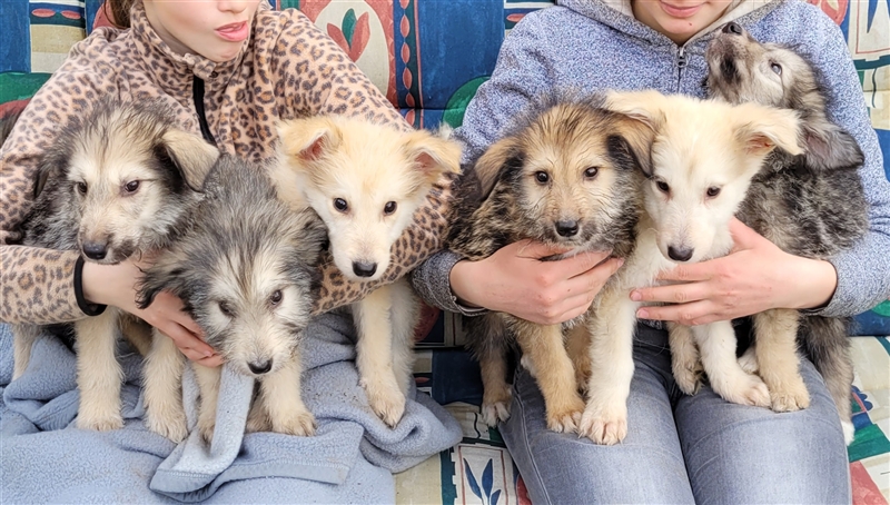 Weitere Angaben: Hündinnen, Farbe: grau und hell, Wurf, Familienhund, kinderfreundlich
