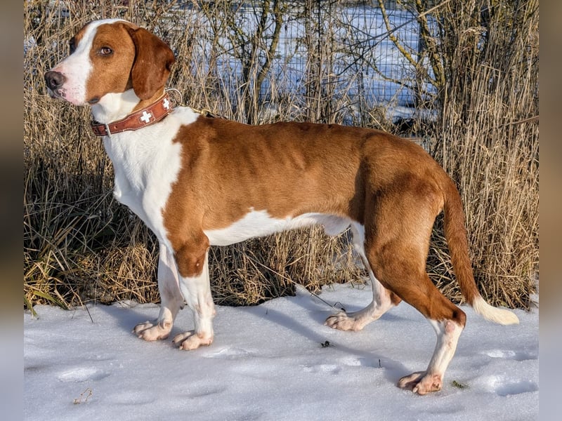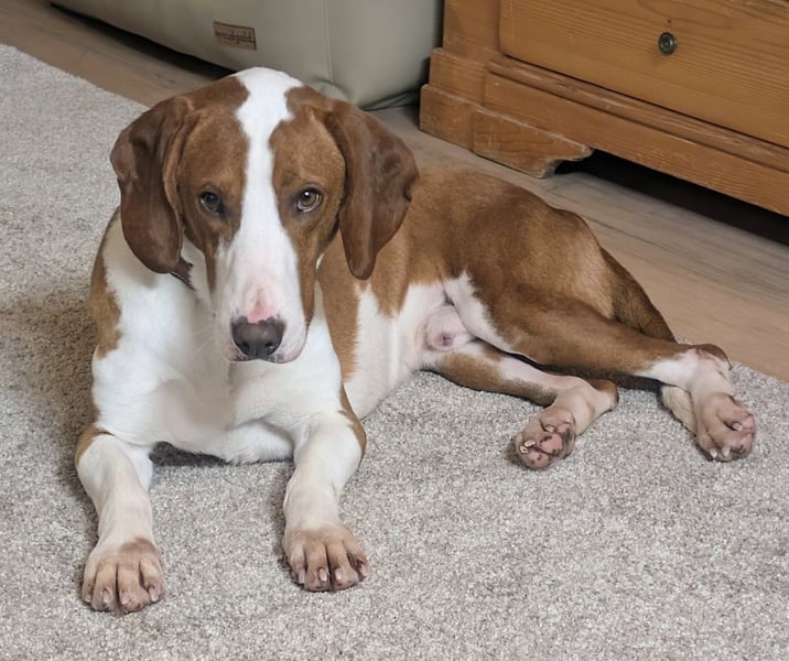 Gustl ist ein sehr sozialer, freundlicher 4-jähriger Istrianer Brackenrüde. Gustl ist ein mittelgroßer Rüde mit einer Schulterhöhe von circa 53 cm und circa 22 Kilo Gewicht. Gustl versteht sich sehr gut mit Artgenossen und geht jedem Ärger aus dem Weg. Dem Menschen gegenüber ist er unterwürfig und lieb, er ist dankbar über jede Streicheleinheit und jedes liebe Wort. Natürlich ist Gustl jagdlich interessiert auch wenn er mit coolen hundeerfahrenen Katzen zusammenwohnen kann. Draußen interessiert sich Gustl natürlich für Spuren und würde sich freuen in der Zukunft ab und an seine Nase einsetzen zu dürfen. Gustl ist kastriert, gechipt, geimpft und besitzt natürlich einen EU-Heimtierausweiß. Gustl ist auf seiner Pflegestelle stubenrein, fährt gerne im Auto mit und bleibt auch stundenweise alleine zuhause. Für mehr Informationen über Gustl kontaktieren Sie uns gerne.