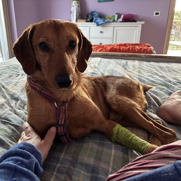 Verträglich mit anderen Hunden: Ja, er ist unterwürfig und wurde auch schon gebissen. (Siehe Fotos, den Verband hat er aufgrund der Bisswunde)
