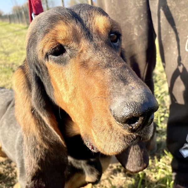 Fulvio ist ein stolzer, souveräner Hund, dabei aber nie böse oder aggressiv. Vermutlich hat er früher bei einem Jäger gelebt und ist es gewohnt, lange Spaziergänge im Wald zu unternehmen. Seine Nase ist dabei stets am Boden, ein echter Spürhund.