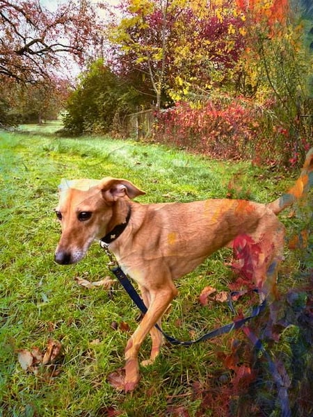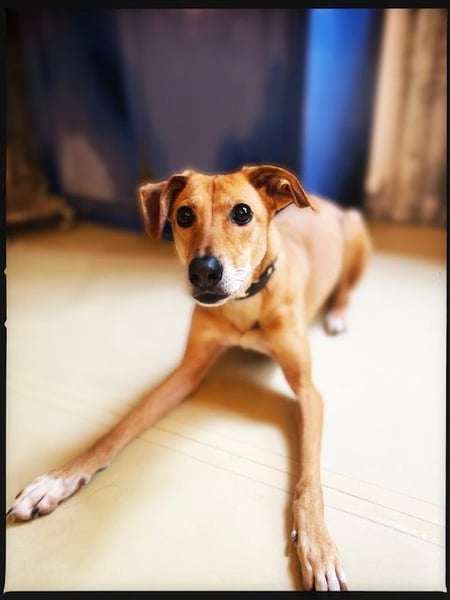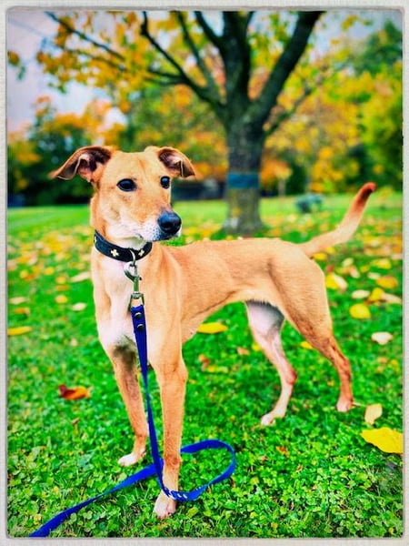 Jetzt ist sie bei uns und ist außergewöhnliches Mädchen, sehr treu, sehr schmusebedürftig, gleichzeitig verspielt und frech. Ziemlich pflegeleicht, und verdrückt einiges an Futter. Der Lieblingsplatz ist vor einem Kamin, viel zu lange musste sie im Ausland frieren. Sie würde am besten umarmt mit dem Menschen schlafen und lange Strecken laufen. Sehr grazil wie eine Gasele, mit samtweichem kurzem Fell.