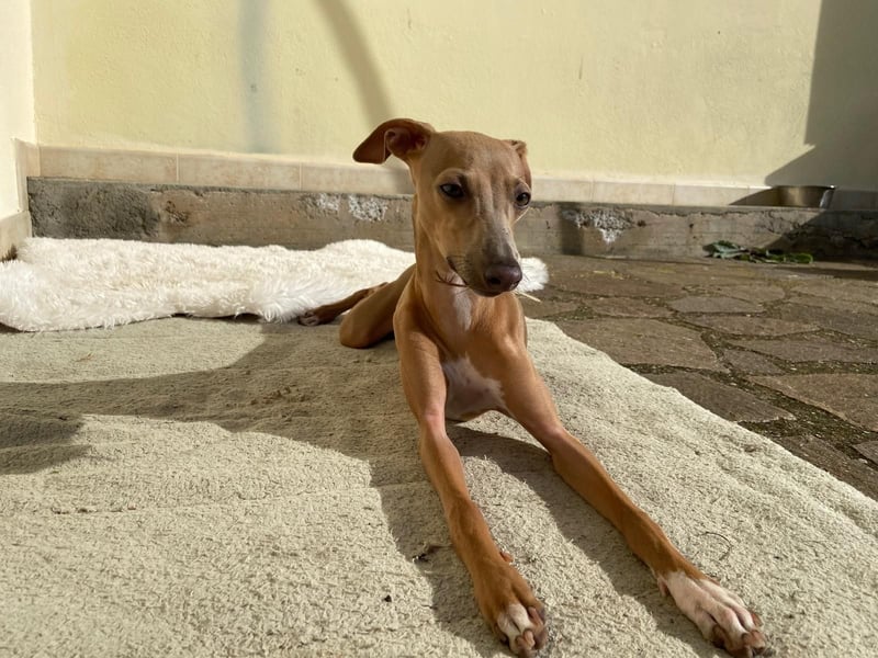 mein Name ist Galleta bzw. werde ich auch Cookie genannt. Ich bin eine 7 Monate junge Windspiel Hündin, die aufgrund ihrer zu kurzen Rute vom Züchter entsorgt wurde. Ich bin dann zuerst bei einer Familie ein Spanien untergekommen und befinde mich jetzt in Deutschland in 84419 Obertaufkirchen.