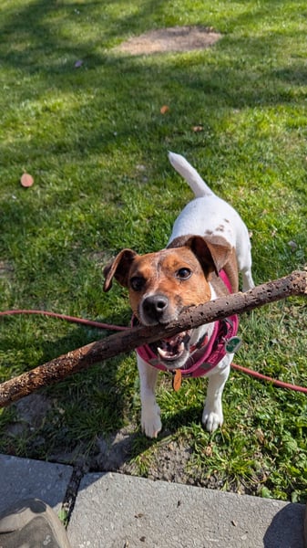 Debbie ist ein fröhlicher und aktiver Hund, der das aufgeweckte Klischee des Jack Russel Terriers voll erfüllt! Sie ist ein kleiner Adrenalin Junkie und macht von sich aus keine Pausen, kennt jedoch durch das Boxen-Training, dass sie in der Box zur Ruhe kommt. Auch im Körperkontakt (z.B. abends auf dem Sofa), kann sie gut abschalten.