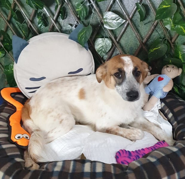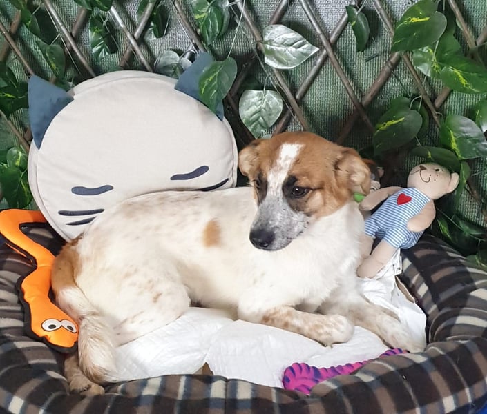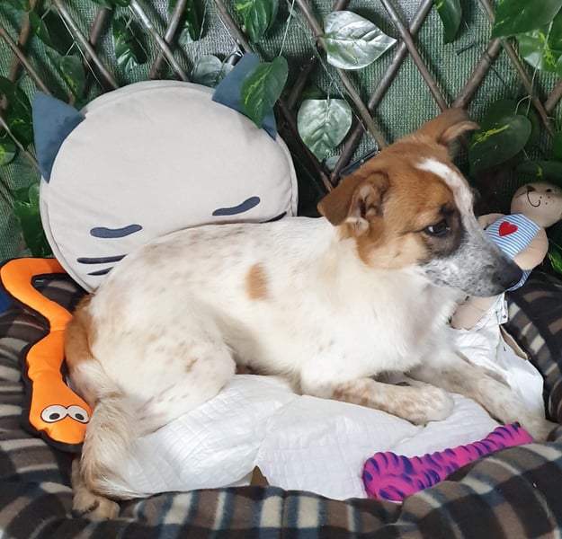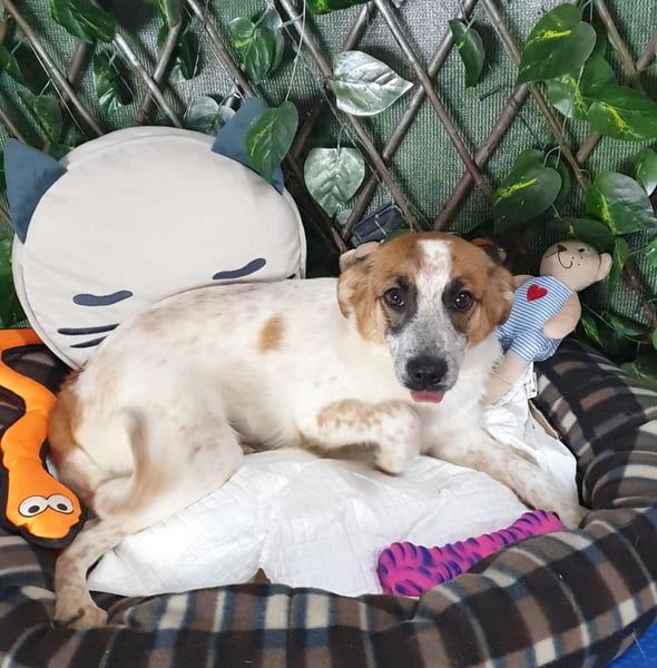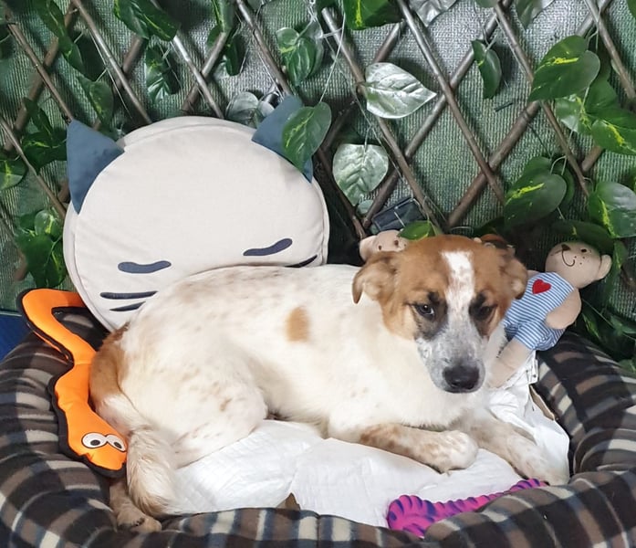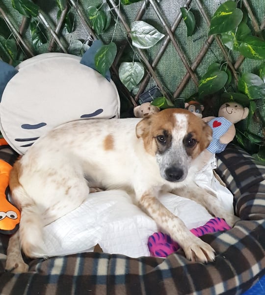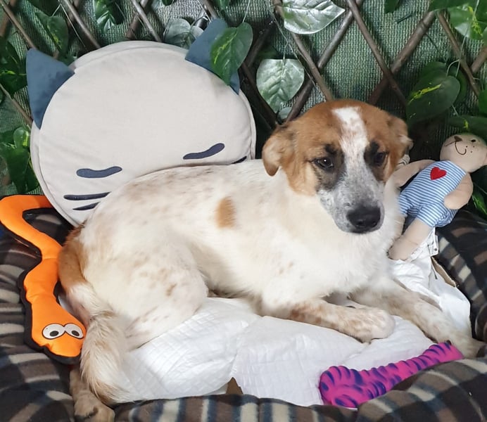 Leandra ist junghundetypisch sehr verspielt, kann wohl schon etwas an der Leine laufen und sollte allerschnellstens dort herauskommen!!
