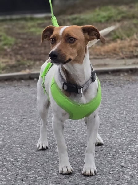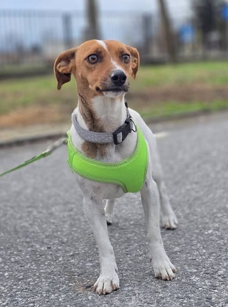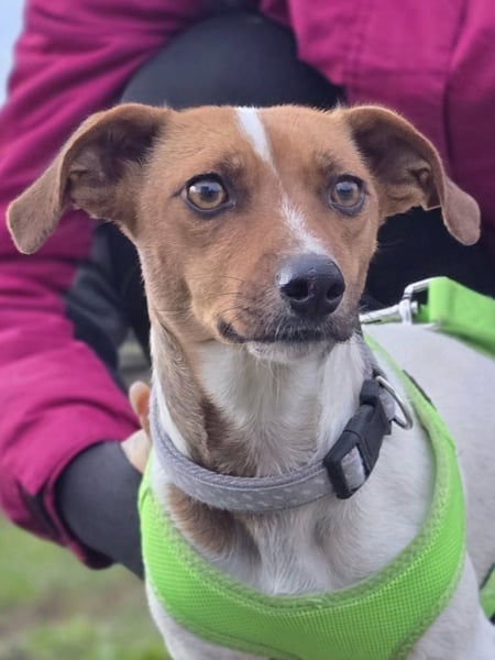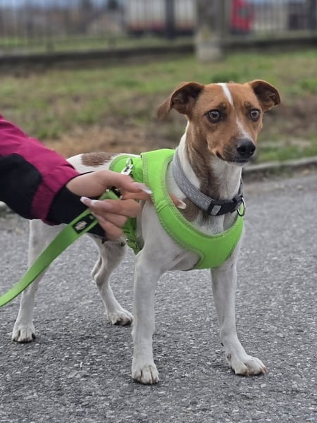 Flekica (geb.14.12.2023, 35cm, 8kg) kleine Jack Russel Mixhündin. Als Welpe wurde sie aus dem Tierheim an der kroatisch ungarischen Grenze adoptiert, wuchs im Haus auf, kannte ein warmes Körbchen und eine vertraute Umgebung. Jetzt wurde sie wieder zurückgebracht. Warum? Man weiß es nicht, aber man sieht in ihren Augen, wie sehr sie sich bemüht tapfer zu sein. Sie sucht Menschennähe, den Blickkontakt und jemanden, der ihr sagt, dass alles wieder gut wird. Die junge Hündin ist sauber im Haus, geht gut an der Leine und versteht sich ganz toll mit anderen Hunden.