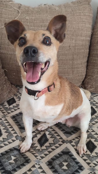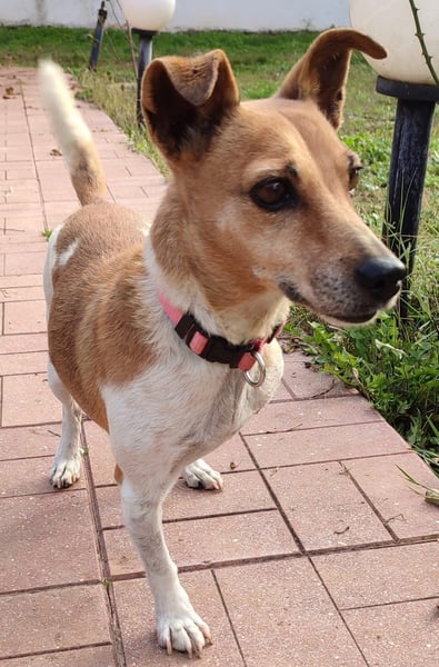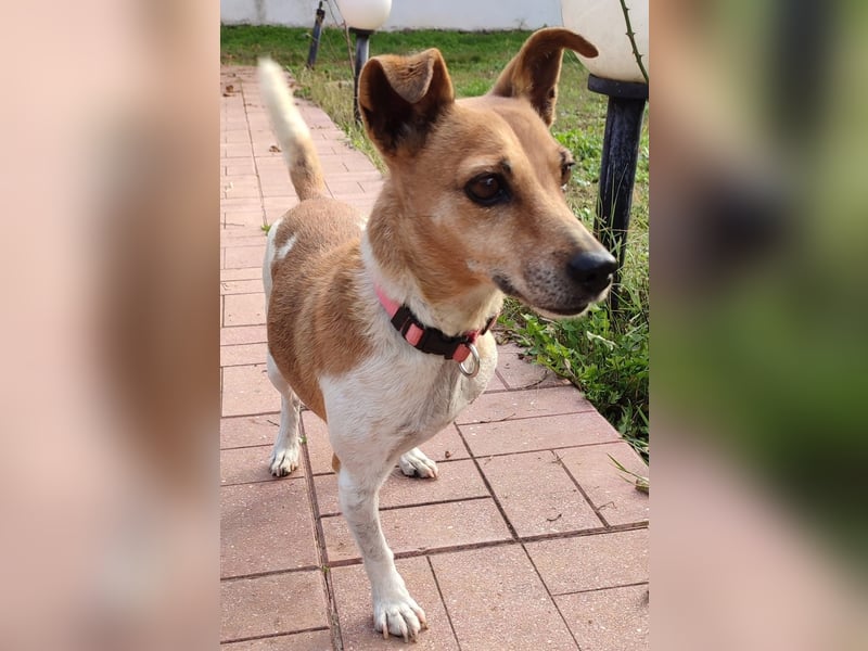Diese bezaubernde Jack Russell Mix Hündin ist etwa 13 Jahre alt – und doch merkt man ihr das Alter kaum an.