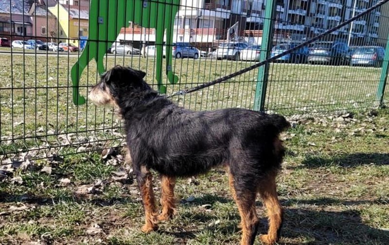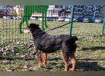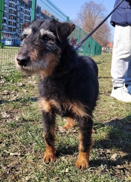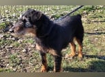 Optisch ist Nelly einfach bezaubernd: ein kleines schwarzes Persönchen mit warmen braunen Abzeichen, wuscheligem Fell und diesem typischen Terrier-Gesichtsausdruck irgendwo zwischen frech, neugierig und sanft. Ihre kurzen Beinchen tragen eine große Persönlichkeit, und wenn sie dich anschaut, hat man sofort das Gefühl, dass sie ganz genau weiß, wie man Menschen um die Pfote wickelt. Sie ist kein Hochglanzhund – sie ist ein echtes Original. Zart gebaut, ein bisschen zottelig und unfassbar charmant.