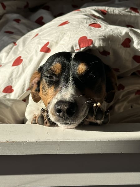 Er ist super lieb mit Kindern anderen Hunden, Welpen und Katzen.