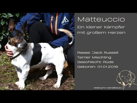 Hallo, ich bin Matteuccio – ein kleiner, lebhafter Jack-Russell-Terrier-Mischling mit einem Herz, das größer ist als meine Körpergröße. Ich bin etwa 32 cm hoch und wiege um die 7 bis 9 kg – also handlich, aber voller Energie. Geboren wurde ich am 1. Januar 2019, also bin ich mittlerweile ein erfahrener kleiner Kerl, der schon einiges erlebt hat.